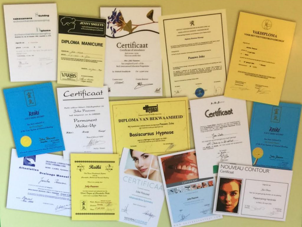 Met veel plezier en optimale inzet verricht ik mijn werkzaamheden. Mijn streven is, dat mijn klanten zich op hun gemak voelen, zodat ik aan hun wensen kan voldoen. Daarom werk ik op afspraak, omdat ik dan ruim de tijd kan nemen, om iedere klant de optimale aandacht te geven. Tal van opleidingen heb ik gedaan, zoals visagie, pedicure, microdermabrasie, permanente make-up, lymfedrainage (Dr. Manuel Vodder), bachbloesemtherapie, holistischemassage en reiki.